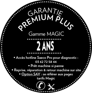 Garantie 2 ans* Accès hotline Saeco Pro pour diagnostic Prêt machine si panne Reprise, réparation & retour machine sur site 170,00 € HT / 204,00 € TTC